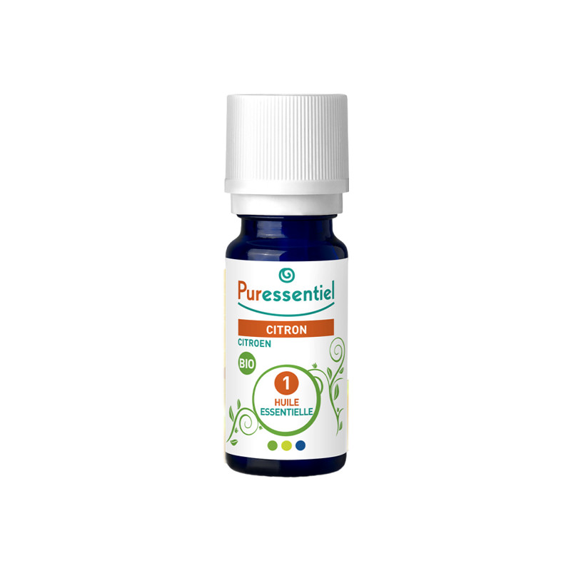 Tomar un máximo de 2 gotas 3 veces al día de aceite esencial de limón en un comprimido neutro Puressentiel (o 1 cucharadita de miel, aceite de oliva o 1/4 de azúcar). No utilizar sin diluir ni mezclar con agua.