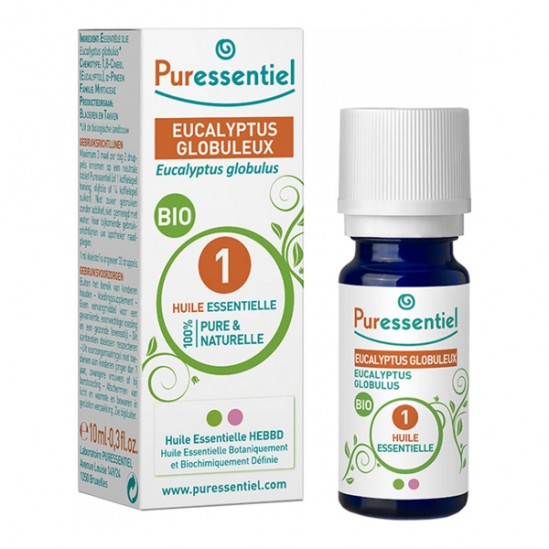 Tomar un máximo de 2 gotas de aceite esencial de eucalipto globulus 3 veces al día en un comprimido neutro Puressentiel (o 1 cucharadita de miel, aceite de oliva o 1/4 de azúcar).