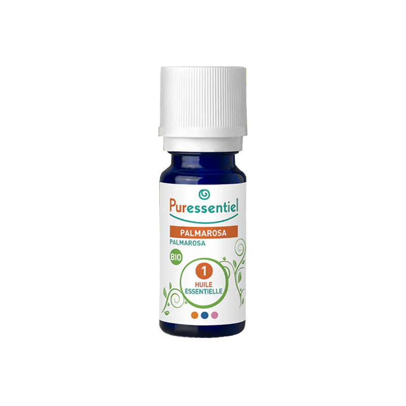 Tome un máximo de 2 gotas de aceite esencial de Palmarosa 3 veces al día en un comprimido neutro Puressentiel (o 1 cucharadita de miel, aceite de oliva o 1/4 de azúcar).