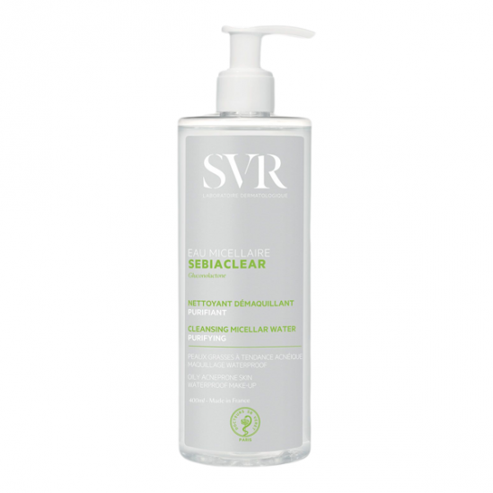 Sébiaclear Agua Micelar purifica, limpia y desmaquilla en un solo gesto, incluso el maquillaje resistente al agua.