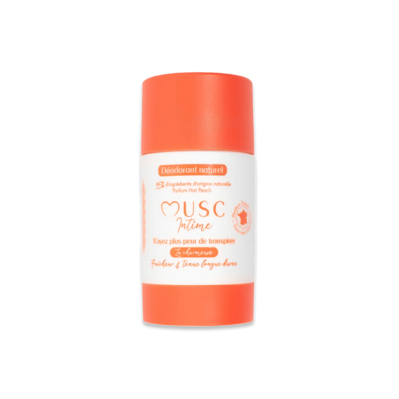 Descubra la irresistible fusión de melocotón, vainilla y almizcle blanco en un desodorante sólido natural que proporciona 48 horas de protección y frescor intenso.