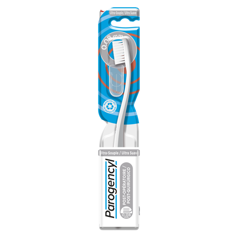 Gracias a sus filamentos de 0,08 mm, el cepillo dental Parogencyl Post-Operative Surgical es ultrasuave y adecuado para su uso después de una cirugía dental o para mucosas frágiles.