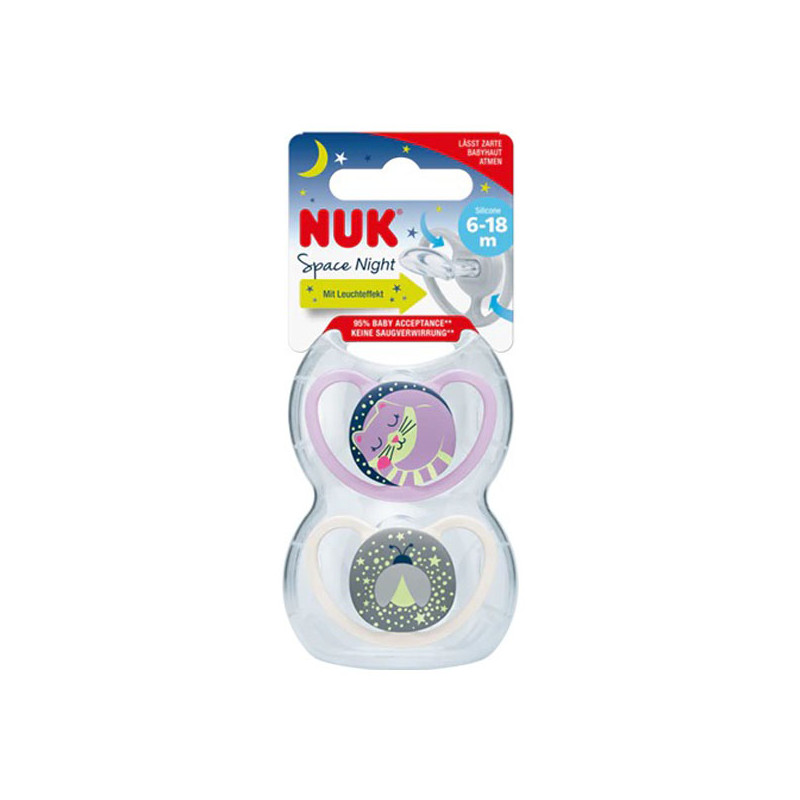 NUKChupete de silicona Space Night , forma fisiológica, 2 piezas