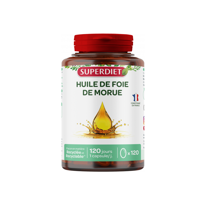 Superdiet Aceite de Hígado de Bacalao se presenta en 120 cápsulas para un programa de 4 meses