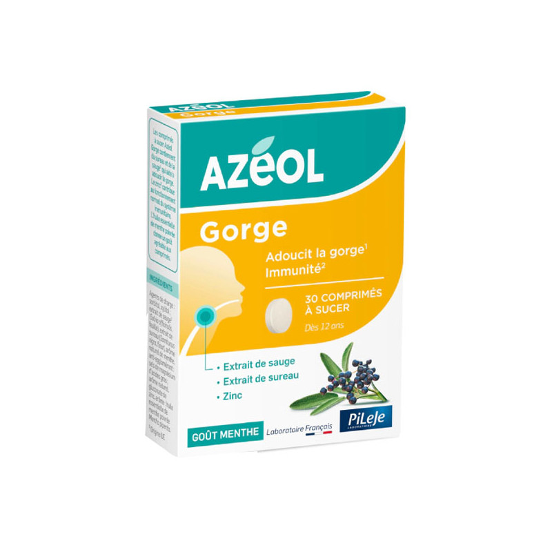 Azéol comprimidos masticables es un complemento alimenticio a base de extracto de salvia, extracto de saúco y zinc. Sabor menta. La salvia ayuda a aliviar la garganta. El zinc contribuye al funcionamiento normal del sistema inmunitario. La gama azeol está compuesta por complementos alimenticios a base de aceites esenciales quimiotipados o extractos de plantas y minerales.