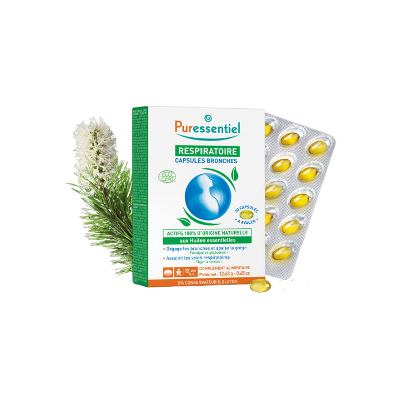 Estas cápsulas mejoran su confort respiratorio despejando los bronquios¹ y aliviando la garganta².