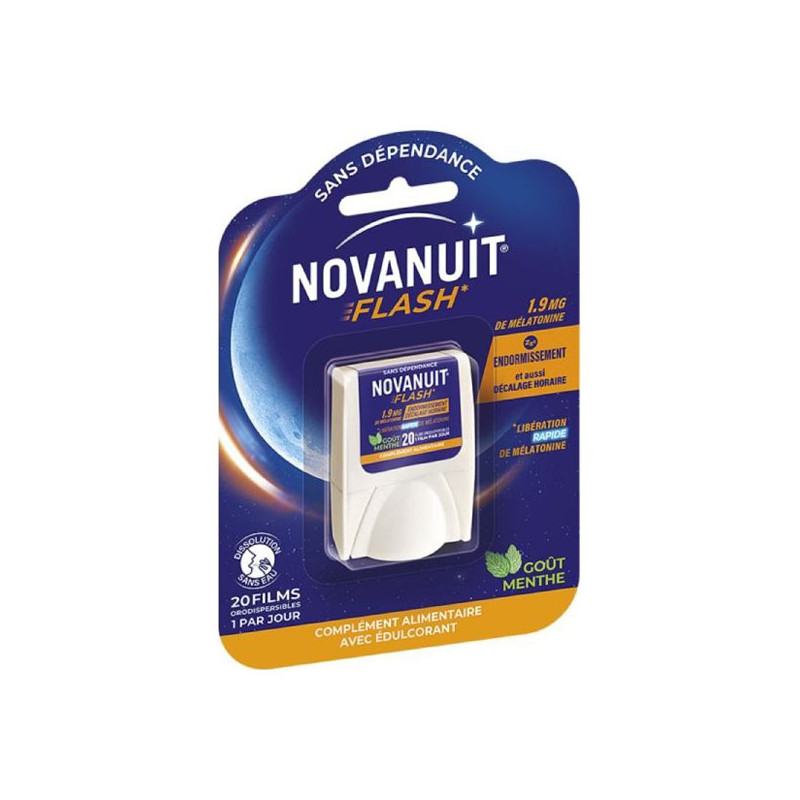 Novanuit Flash es un complemento alimenticio con edulcorante reservado a los adultos, para reducir el tiempo que se tarda en conciliar el sueño y los efectos del jet lag.