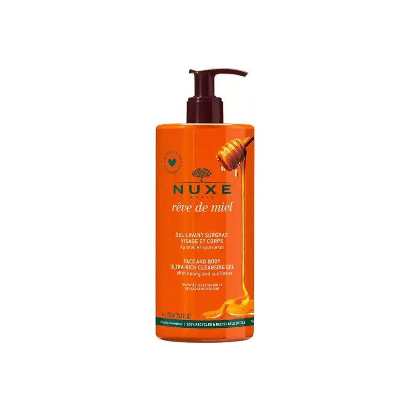 Este gel de ducha supergraso para rostro y cuerpo, con Miel y Girasol, es cremoso y deliciosamente meloso. Cuida la piel seca y sensible todos los días, respetando la película hidrolipídica. Limpia el rostro y el cuerpo sin resecar. Un verdadero momento cocooning en la ducha.