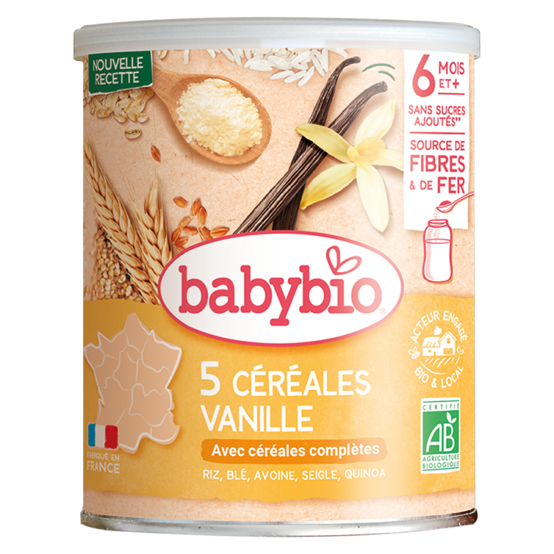 Introducir al bebé en nuevas texturas es el papel de la quinoa: ¡una semilla milenaria muy popular en Sudamérica! Con su ligero sabor a nuez, es muy popular entre los niños pequeños. Cultivada ecológicamente, la quinoa combina de maravilla con la dulzura de la vainilla.