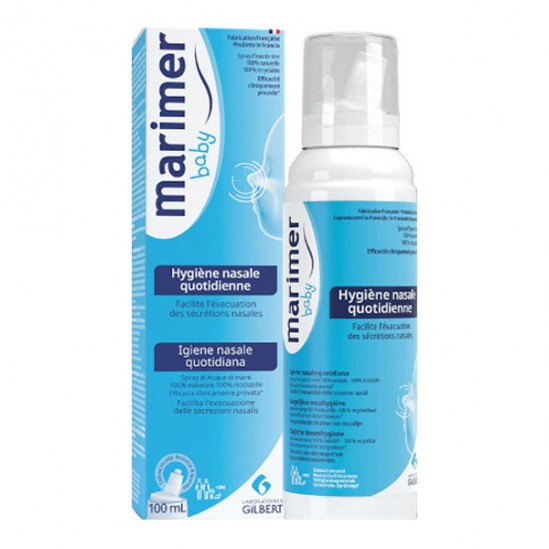 MARIMER BABY Higiene Nasal es un spray de agua de mar 100% natural, rico en minerales marinos y oligoelementos. Puede utilizarse diariamente con fines preventivos gracias a su concentración fisiológica (isotónica - 9‰). Su microdifusión permite una aplicación suave y uniforme sobre la mucosa. Su amplia punta de seguridad diseñada para lactantes (excepto prematuros) y niños pequeños garantiza una administración fácil y segura. Su válvula antirretorno está diseñada para evitar cualquier riesgo de contaminación externa y protege la solución.