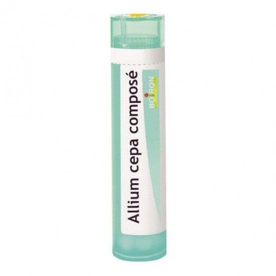 Retire la lengüeta, invierta el tubo de compuesto de allium cepa y tire ligeramente del tapón. Colocar todos los gránulos de la dosis bajo la lengua. No tomar sustancias astringentes en la media hora siguiente a la toma de medicamentos homeopáticos, como café, tabaco, alcanfor, menta y manzanilla. Para los resfriados, la rinitis, la coriza y la fiebre del heno, tomar 3 gránulos 5 veces al día, espaciándolos a medida que mejoren los síntomas. BOIRON Utilice un dentífrico sin menta (como Homéodent ).