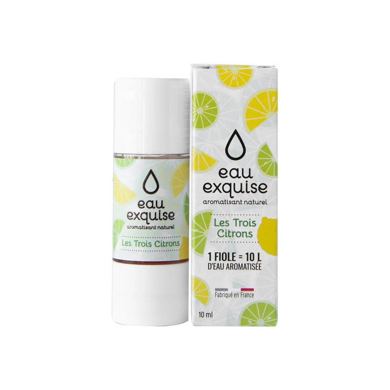 El aroma natural Les Trois Citrons de Eau Exquise es una auténtica explosión de frescor para su agua. 100% natural y ecológico, está elaborado con cítricos deliciosamente ácidos que revitalizan y dan energía al cuerpo. Sin azúcares añadidos ni aditivos, es ideal para quienes desean una alternativa sana y sabrosa a las bebidas industriales. Unas gotas bastan para transformar el agua sin gas en una bebida espumosa y sabrosa.