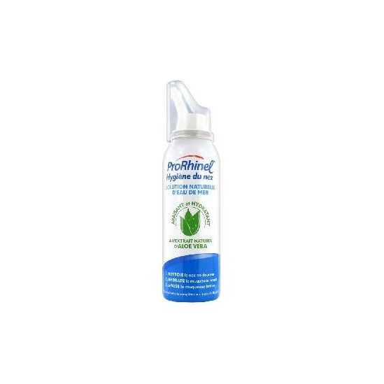 ProRhinel Higiene Nasal Solución Natural de Agua de Mar Spray 100 ml es un spray que contiene una solución isotónica natural de agua de mar y extracto de aloe vera con propiedades calmantes e hidratantes. Este spray limpia suavemente las fosas nasales en caso de obstrucción nasal (resfriado o alergia). Alivia las fosas nasales irritadas e hidrata la mucosa nasal. Reduce la viscosidad de las secreciones nasales, las afloja y favorece su evacuación. La boquilla tiene un collarín de seguridad para evitar que se introduzca demasiado profundamente, evitando así que los niños se lesionen. Advertencia: Este producto es un aerosol y es inflamable, por lo que no puede enviarse con todos nuestros transportistas.