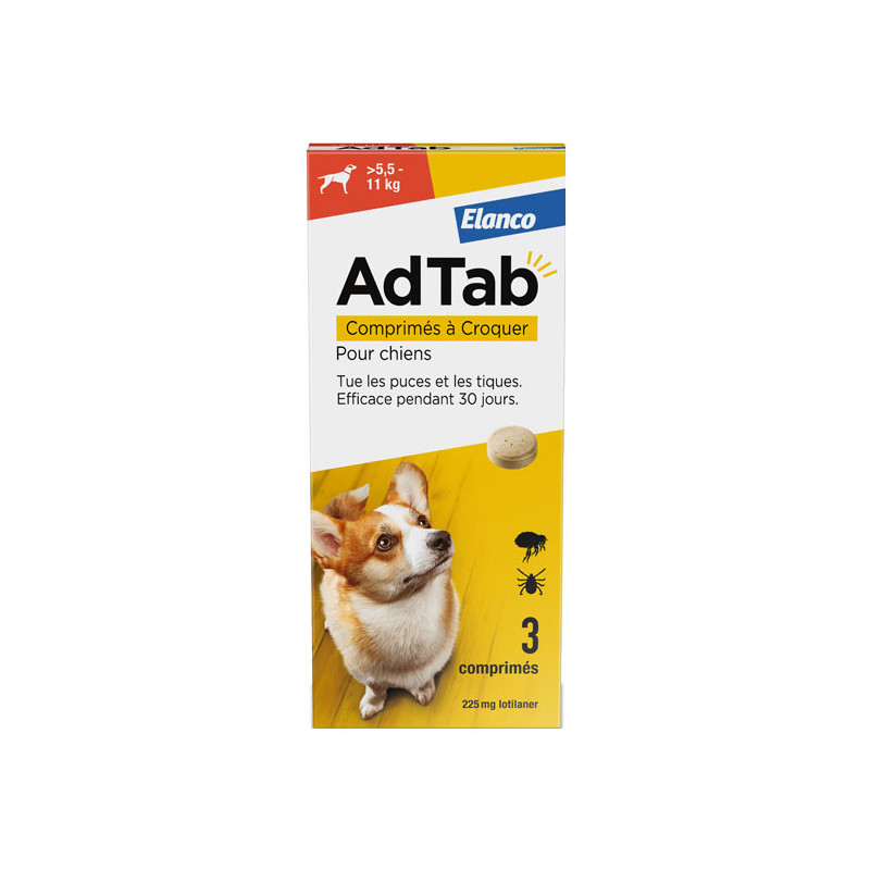- Peso del perro: > 5,5 - 11 kg con 1 comprimido deAdTab 225 mg