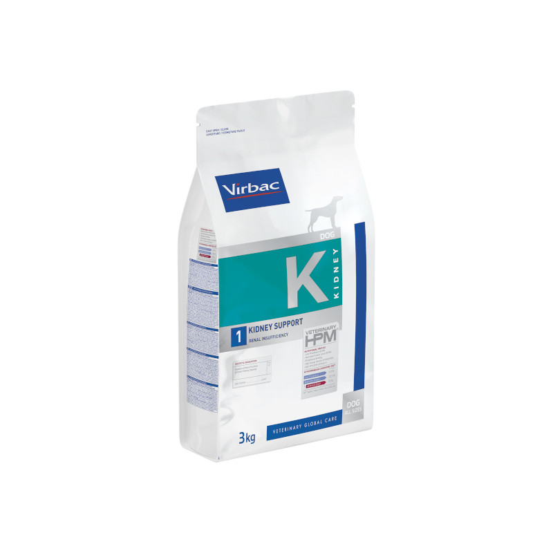 - VETERINARY HPM DOG K1 KIDNEY SUPPORT proporciona un tratamiento nutricional completo para perros que padecen insuficiencia renal crónica.