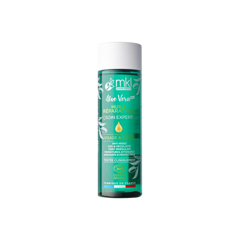 El aceite reparador ha sido clínicamente probado por su acción reparadora, antiarrugas, reductora del tono desigual de la piel, antiestrías, calmante, protectora y uniformadora del tono de la piel en el rostro y el cuerpo - cuello/decolte.