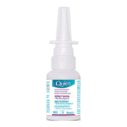 La respiración bucal es una de las causas de los ronquidos. El spray nasal antirronquidos con aceites esenciales de pino y eucalipto de quies favorece la respiración por la nariz. Sus extractos de hamamelis, acebo y castaño de Indias despejan las vías respiratorias, mientras que su agente filmógeno natural lubrica las paredes nasales. De eficacia inmediata, facilita la respiración.