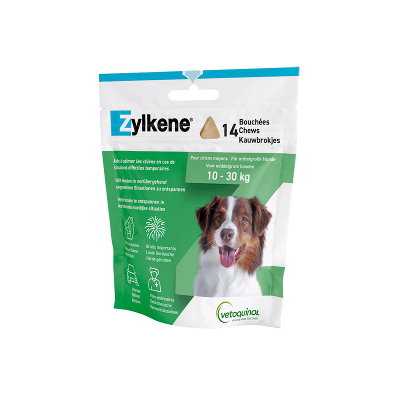 Los mordedores Zylkene contienen un ingrediente natural con un efecto relajante/calmante demostrado, derivado de la caseína, una proteína de la leche.
