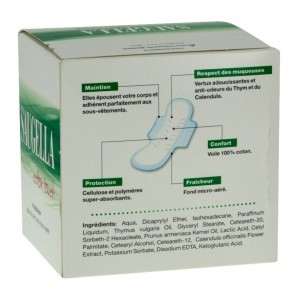 Saugella Cotton Touch Nuit avec Ailettes son hipoalergénicos, están hechos de algodón 100% hidrófilo y enriquecidos con extractos naturales de tomillo y caléndula para un máximo confort.