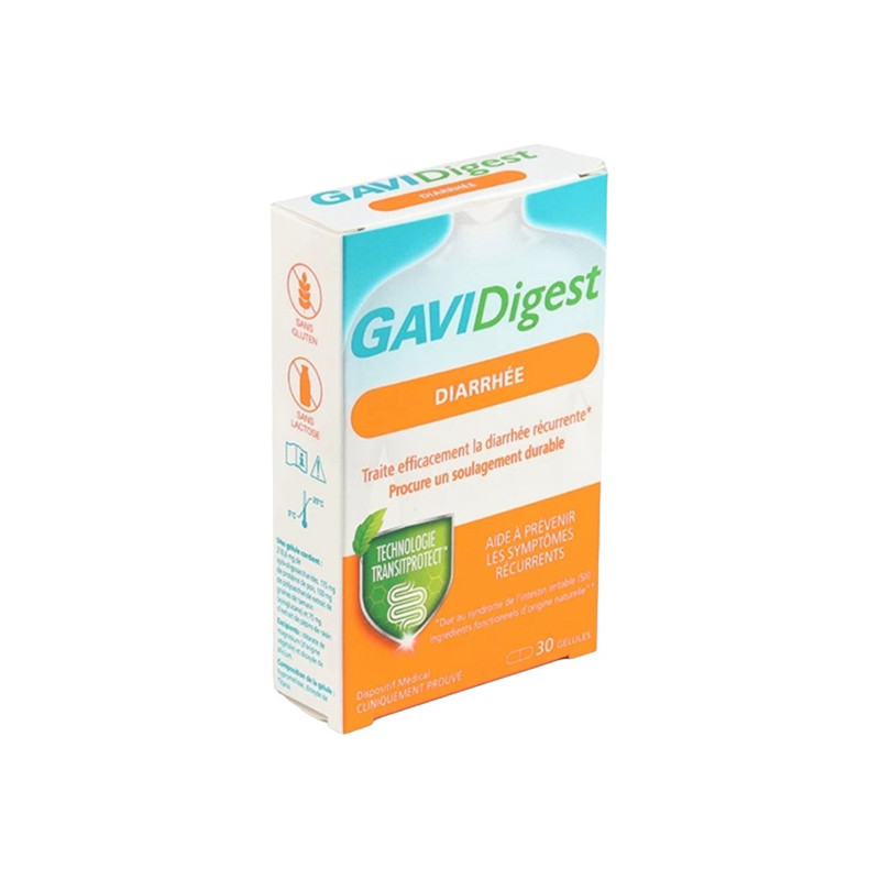 GAVIDigest Diarrea es un producto sanitario que restablece la función intestinal en pacientes que sufren alteraciones debidas al Síndrome del Intestino Irritable (SII), que pueden estar relacionadas con la hipersensibilidad intestinal o el uso de determinados medicamentos, con el fin de aliviar y/o prevenir síntomas como la diarrea crónica o recurrente.