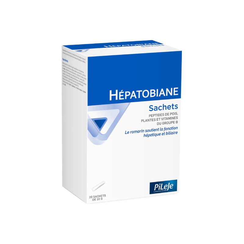 Hépatobiane Bolsitas es un complemento alimenticio a base de: -péptidos de guisantes -plantas, en particular el romero, que contribuye a una función hepática y biliar sana -vitaminas del grupo B. Elaborado con : Brócoli, Romero, Vitamina B6, Proteínas de guisante